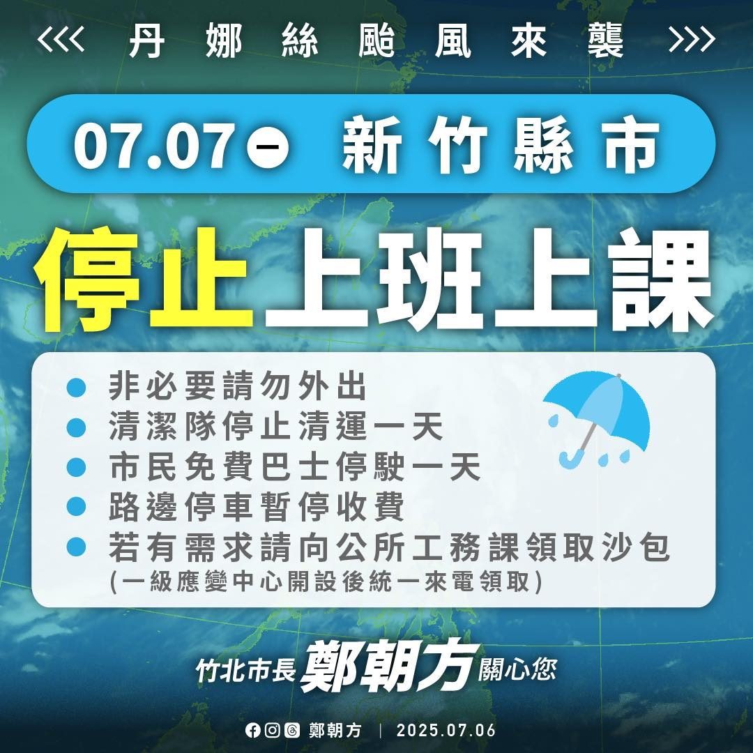 因 中颱丹娜絲 影響,07/07(一)停止上班上課